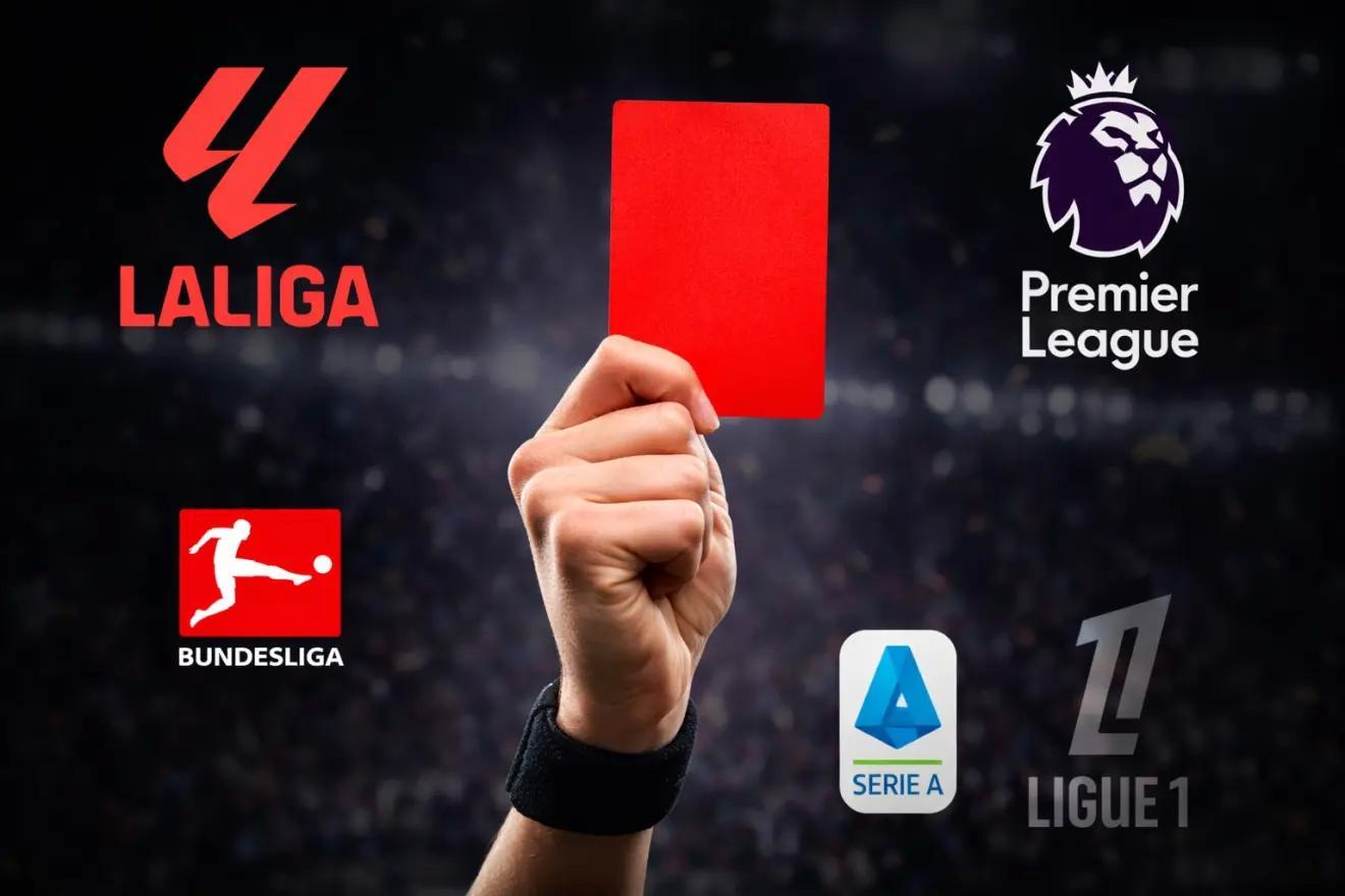 最能左右比赛走势的直接红牌,同样指向西班牙。西甲目前的65张红牌中,有41张为直接红牌,这一比例在欧洲范围内偏高。法甲直接红牌数量与之相同,但比赛场次和总赛程均更少。